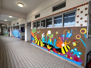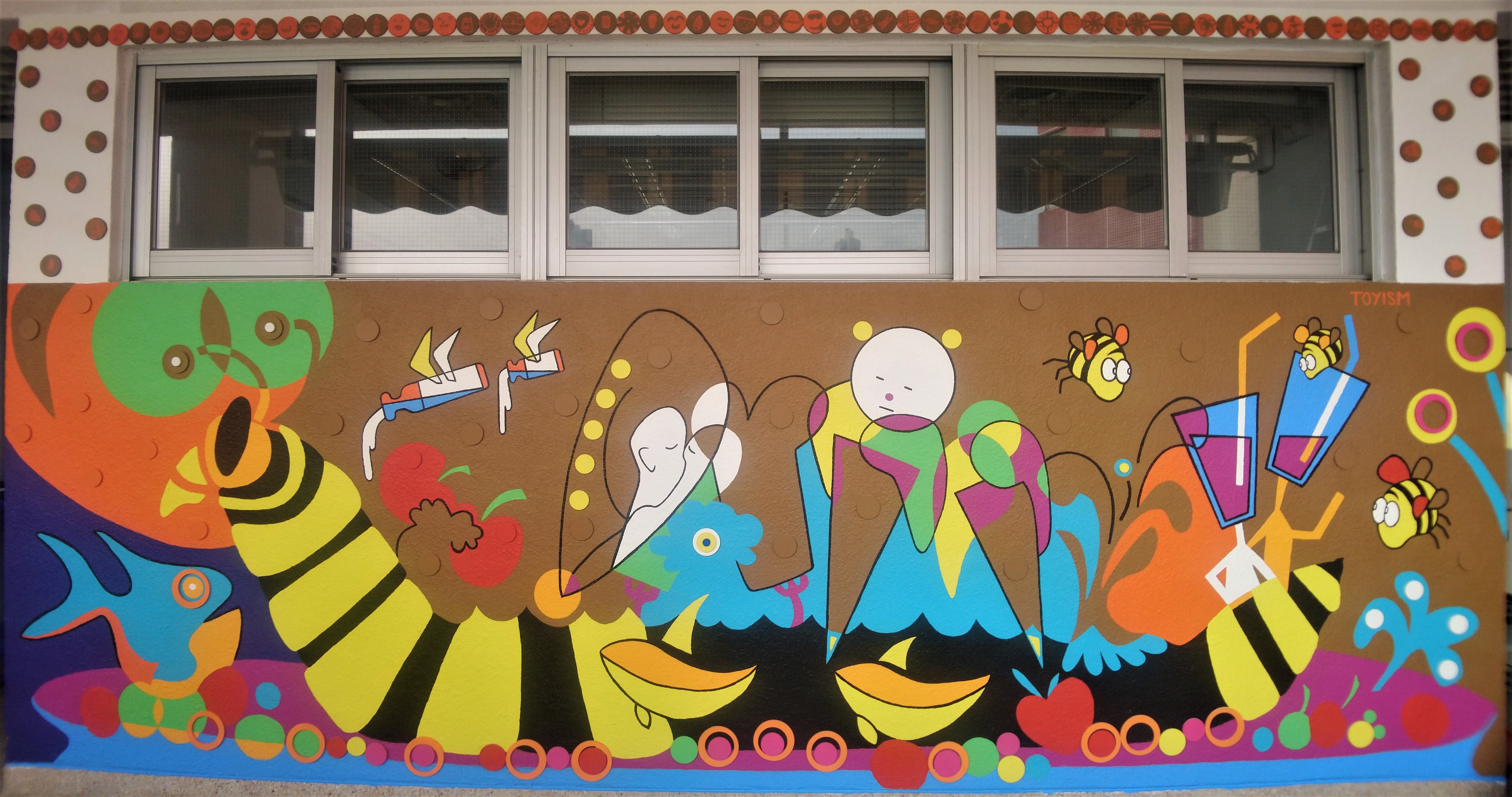 "方舟校園" 「引入藝術專業資源,營造視覺藝術氛圍,豐富學生學習經驗」為本校 2018 年的視藝科重點教學目標。本校當時邀請了源自荷蘭的專業藝術家團隊「玩具主義」,以「方舟校園」為題,駐校一個月為本校設計及製作了六幅400cm x 130cm的大型壁畫,並帶領相關活動,營造校內藝術氣氛。 是次Toyism與本校合作,是該藝術團隊在亞洲第一個創作的壁畫計劃。其間更有六位來自不同國家的玩具主義成員到港,為本計劃來港商討、策劃、製作及帶領工作坊。是次計劃亦分別獲成報、明報、親子王及有線電視《拉近文化》報導。 學生除了能與專業海外的藝術家交流和學習外,日後壁畫更能成為學生的評賞對象,豐富學生的視覺藝術體驗。 |